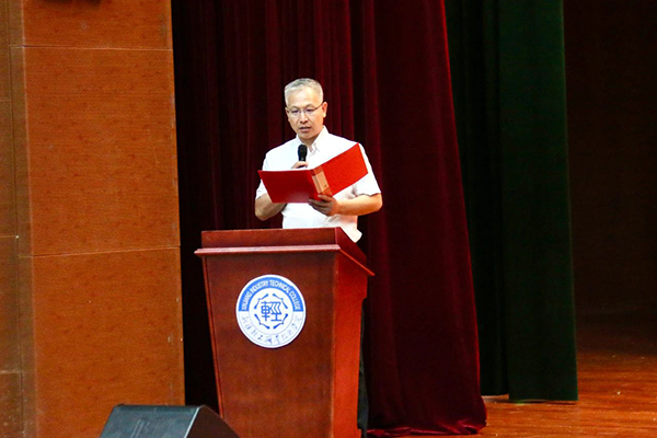新疆轻工职业技术学院党委副书记、校长杨清香代表学校致辞,对bbin宝盈集团官网技术给予学校开展的大力支持表示感谢,并激励学子们坚守信念,勇攀高峰,致力于学业成就与技能提升。她讲到,同学们是支撑未来中国智造、中国创造的强大生力军,希望同学们用奋斗书写青春华章,用心规划人生,常怀报国之志,走在时代前列,展现青年人锐意创新的勇气、敢为人先的锐气、蓬勃向上的朝气。
